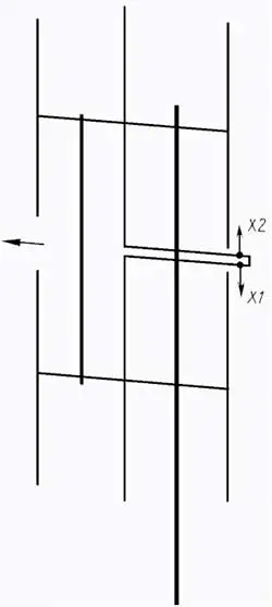 Диэлектрическая мачта (например, стеклопластиковая) и изоляционная распорка расположены в промежутках между элементами. На рис. 9 они показаны более жирными линиями. Кабель питания лучше отводить горизонтально за рефлекторы и возвращать к мачте широкой петлёй, подальше от концов рефлектора. На этом участке (вблизи антенны) через каждые 0,5 м на кабель желательно надеть трубчатые ферритовые магнитопроводы (от кабелей питания мониторов).