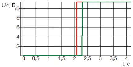 Рис. 3. Зависимость напряжения на обмотке реле от времени после включения питания
