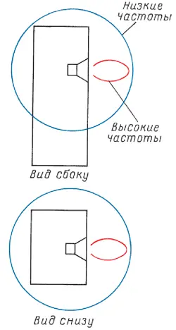 Мысленно представим себе следующий эксперимент: в стене комнаты без окон на расстоянии, например, 2 м вырезаны два выходящих на улицу отверстия диаметром, равным диффузору громкоговорителя. Таким образом, мы получим эквивалент акустической системы, обладающей разной диаграммой направленности для различных частот, причём для высоких частот диаграмма будет уже. Мы сидим в комнате и стараемся понять, что происходит на улице. А теперь выйдем на улицу - звуки будут окружать нас.