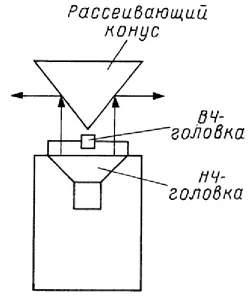 Это действительно был прорыв, который сохраняет свои преимущества до настоящего времени, однако у коаксиального громкоговорителя с рупорным высокочастотным излучателем очень невелика область комфортного прослушивания из-за обострения направленности с ростом частоты сигнала. В коаксиальной конструкции высокочастотный излучатель находится в вершине конуса низкочастотного излучателя, который выполняет функцию подвижного(!) рупора, влияя на тембральную окраску в зависимости от положения слушателя.