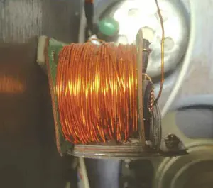 Схема АС показана на рис. 2. Широкополосные динамические головки 3ГДШ-2-4 (2 шт.) и 5ГДШ-1-4 (2 шт.) соединены последовательно и работают во всём диапазоне воспроизводимых частот. Выше частоты 12500 Гц начинает работать высокочастотная головка 5ГДВ-1-8, которая подключена через конденсатор С1 (составлен из двух или более конденсаторов К73-11 на напряжение не менее 100 В). Она защищена лампой накаливания EL1. На частотах менее 80 Гц начинают работать две динамические головки 25ГДН-1-4, которые подключены через катушку индуктивности L1 (рис. 3). Еёиндуктив-ность - 16 мГн, она намотана на каркасе из изоляционного материала. Диаметр каркаса - 17 мм, длина намотки - 25 мм, она содержит 420 витков провода ПЭВ-2 диаметром 0,6 мм. Её индуктивность без магнитопровода - 2,5 мГн, активное сопротивление - 2,1 Ом. Магнитопровод катушки - замкнутый, его набирают из полосок магнитомягкого железа толщиной 0,6 мм. Полоски гнут по месту и обрезают впритык. Последняя полоска изготавливается с полочками для отверстий. Винтом и гайкой стягивают или ослабляют магнитопровод, регулируя индуктивность катушки. Для грубой регулировки добавляют или убирают полоски железа. После окончательной регулировки винт и гайку фиксируют краской.