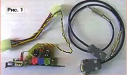 Внешний вид устройства изображен на фото рис. 1. Оно представляет собой релейный переключатель, подключающий к выходу звуковой карты выбранную нагрузку. Устройство располагают в системном блоке и управляют им через СОМ порт.
