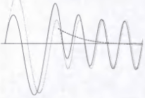 На рис. 9 показано, как изменяется симметричный нестационарный сигнал при прохождении через шесть дифференцирующих цепей первого порядка (утолщенная линия), имеющих частоту среза на порядок ниже частоты первого периода колебаний сигнала. Экспоненциальный участок переходного процесса показан штриховой линией.