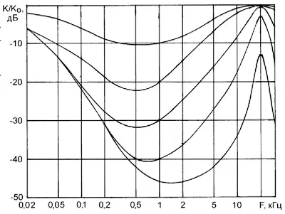 Важно отметить, что АЧХ передачи регулятора при разных значениях уровня громкости должны соответствовать кривым равной громкости для конкретного слушателя. Это можно достигнуть при наличии или при введении в тракт звуковоспроизведения регулятора чувствительности, приводящего уровень тонкомпенсации в соответствие субъективным оценкам.