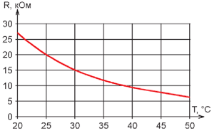 Рис. 2. Зависимость сопротивления применённого терморезистора от температуры