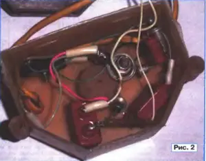 Монтаж собранного автомата показан на рис. 2. Конденсаторы С1 и С2 - МБГП (С1) или МБГЧ на напряжение не менее 400 В. Кроме тринистора КУ202Л. можно использовать КУ202К, КУ202М, КУ202Н. При суммарной мощности ламп более 500 Вт тринистор необходимо снабдить теплоотводом. Кнопки можно установить на дверцах распределительных электрощитов, имеющихся на каждой лестничной площадке. Длина идущих к кнопкам проводов должна быть достаточной, чтобы дверца щита открывалась полностью.