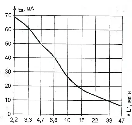 На рис. 4 показана схема питания светодиодов HL1-HL4 с применением этой микросхемы. График типовой зависимости их суммарного тока от индуктивности дросселя L1 приведён на рис. 5. При его индуктивности 2,2 мкГн (использован дроссель DLJ4018-2.2) на каждый из четырёх параллельно соединённых светодиодов EL1-EL4 приходится по 69/4=17,25 мАтока, что вполне достаточно для их яркого свечения.