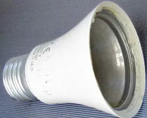 Редко бывает, что перегорел защитный (предохранительный) резистор, который обычно установлен между платой и контактами цоколя, его номинальное сопротивление - несколько десятков ом. Наличие и исправность этого резистора легко проверить омметром, "прозванивая" между собой контакты цоколя и платы. Выход из строя этого резистора в большинстве случаев означает наличие более серьёзной неисправности.