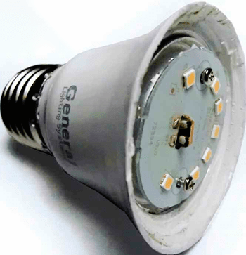 В мои руки попало несколько вышедших из строя, уже широко распространённых светодиодных ламп на напряжение 230 В, в изобилии предлагаемых в наших магазинах. Захотелось выяснить причину их быстрого выхода из строя и внутреннее устройство. Все лампы проработали не более одного года, хотя на упаковках утверждается, что их время непрерывной работы 30000 ч, получается 1250 суток, что составляет более трёх лет. И ведь наверняка сгоревшие лампы не эксплуатировались круглые сутки.