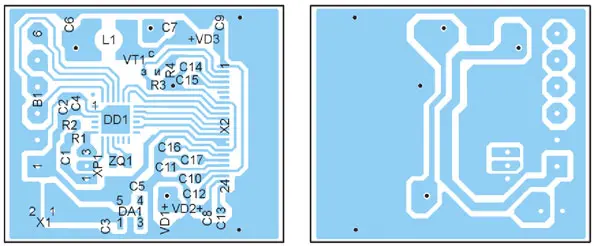 Файл для программирования микроконтроллера и чертёж печатной платы находятся здесь.