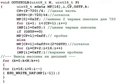 Далее, в зависимости от ширины столбца (N), выводим (уже в дисплей) сформированный 16-байтный массив столько раз, какова ширина столбца в пикселах.