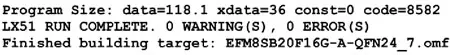Из этого сообщения можно заключить, что в программе использована почти вся внутренняя оперативная память с прямой адресацией объёмом 128 байт (data=118.1), а внешняя оперативная память с косвенной адресацией объёмом 2 кБ почти не использована (xdata=36). Кодовая часть программы использует чуть более половины всей программной памяти объёмом 16 кБ или 16384 байта (code=8582). Остаток программной памяти равен: 16384 -- 8582 = 7802 а 7,6 кБ. Кроме того, при трансляции применена так называемая small-модель, в которой данные располагаются в области памяти с прямой адресацией (data). В этом случае, во-первых, существенно экономится программная память, а, во-вторых, программа работает несколько быстрее.