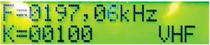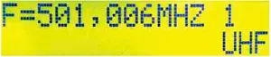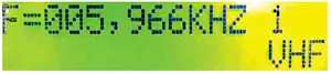Для измерения ВЧ-сигналов частотой до 1250 МГц кнопкой SB2 выбирают входной разъём XW3. С него сигнал поступает на вход fIN имеющегося в микросхеме DD1 делителя частоты. Коэффициент деления задан микроконтроллером равным 1000. Сигнал с выхода делителя частоты, преобразованный в импульсы длительностью около 0,5 мкс одновибратором на триггере DD4.1, поступает через мультиплексор DD2 на вход TOCKI микроконтроллера. Мультиплексор установлен в нужное для этого состояние кодом 010 на выходах RC0-RC2 микроконтроллера. Программа микроконтроллера измеряет частоту и с учётом коэффициента деления выводит результат на ЖКИ (рис. 4).