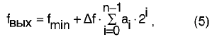 - Зададимся значениями fmin - нижняя частота генерации, Df - шаг перестройки, п - число разрядов двоичного числа сигнала цифрового управления.