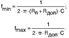 При необходимости получения непрерывного закона изменения частоты резисторы RM заменяют сдвоенным потенциометром с сопротивлением Rn и включенным последовательно ему резистором Rдоп. Значения этих сопротивлений находим из формул: