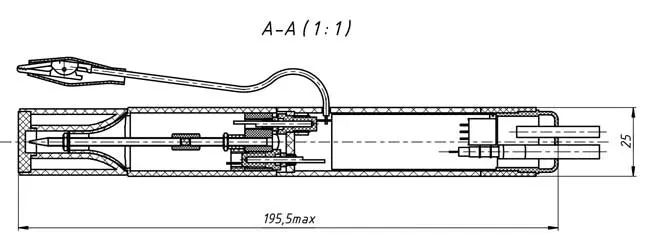 Длина отрезка кабеля РК50-3-111, соединяющего пробник с прибором, не более 490 мм. Центральный проводник кабеля – многожильный, изоляция – сплошной полиэтилен. Допускается применение иных кабелей с волновым сопротивлением 50 Ом. Встречаются кабели с гибким центральным проводником и изоляцией из пористого полиэтилена. В этом случае длину кабеля можно увеличить с учетом коэффициента укорочения длины волны в кабеле. Если не предполагается использовать прибор на высоких частотах, длину кабеля также можно увеличить.
