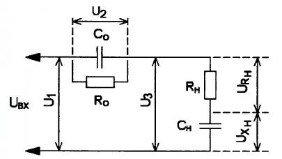 Зависимость между экспериментальными данными - измеренными значениями напряжений U1 U2, U3, константами fBX, Ro. С0 и искомыми параметрами RH, Сн описывают уравнения [2]: