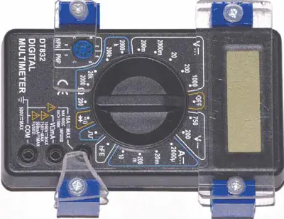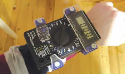 Наиболее часто комбинированные измерительные приборы - мультиметры - производятся в виде основного электронного блока, к которому гибкими проводами подключается пара щупов. Такая конструкция удобна при использовании прибора за рабочим столом. Но если возникает необходимость выполнить измерения, когда рядом нет надёжной горизонтальной поверхности для размещения мультиметра, то могут возникнуть проблемы. Как правило, один щуп приходится держать в ведущей руке, корпус прибора требует второй руки для удержания, так, что второй щуп удобно удерживать уже затруднительно. Для решения этой проблемы автор предлагает дополнить мультиметр магнитным креплением. Такое крепление позволяет зафиксировать прибор на любом достаточно крупном железном предмете, а при наличии магнитного браслета и на предплечье, при этом сохраняется возможность использовать почти все функции мультиметра.