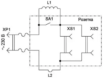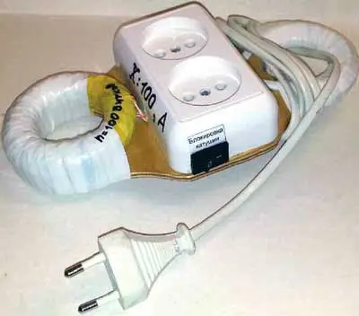 Розетку, как и катушки, крепят к основанию. Все электрические соединения выполнены внутри корпуса электрической розетки, на стенке которой размещён выключатель, который должен быть рассчитан на ток, потребляемый нагрузкой.