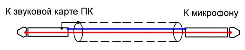 Подключают измерительный микрофон к линейному входу звуковой карты ПК через экранированный кабель с двумя жилами. Экран провода подключается с одной стороны – стороны звуковой карты, это также положительно сказывается на точности измерений – рис. 6.
