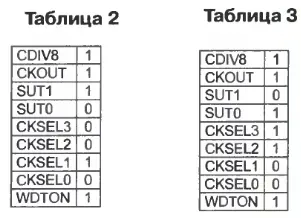 Устройство налаживания не требует. При программировании микроконтроллера разряды конфигурации устанавливают в соответствии с табл. 2. Для генератора с кварцевым резонатором 20 МГц они приведены в табл. 3.