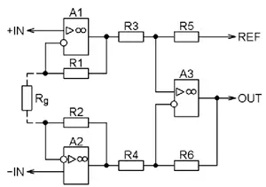 От сопротивления внешнего резистора Rg зависит коэффициент усиления инструментального усилителя: