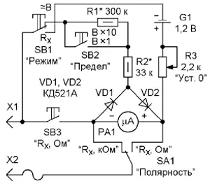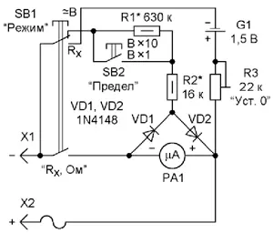 Рис. 2. Вариант схемы малогабаритного вольтомметра