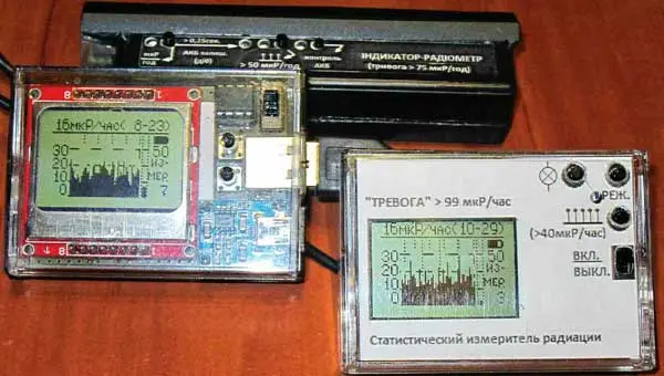 Среди всего многообразия приборов, измеряющих уровень радиации, трудно найти такой, который показывал бы не только текущий уровень, но и динамику его изменения на протяжении часа, суток, месяца. Эта информация была бы нелишней при оценке реальной радиационной опасности. Предлагаемые приборы в какой-то мере заполняют этот пробел. В ходе их разработки и реализации автору пришлось решить задачу организации взаимодействия выбранного в качестве средства отображения результатов измерения индикатора ЖКИ от мобильного телефона Nokia 5110 с микроконтроллером семейства PIC, а не только c модулями Arduino, для которых в Интернете имеются соответствующие библиотеки [1].