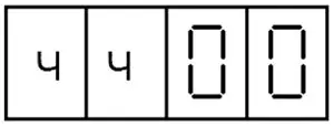 8.Затем, нажав на кнопку SB2 "Выбор", выводят на индикаторы цифры ранее установленных часов и нули на индикаторах минут - ЧЧ00 (рис. 10), где ЧЧ -установленное значение часов. Установка минут осуществляется также нажатием на кнопку SB3 "Установка", значение изменяется по кольцу от 0 до 59.