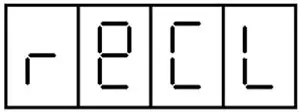 Для установки порога переключения яркости дневной/ночной необходимо зафиксировать кнопку SB1 в нажатом положении в момент отображения времени и, прикрыв фоторезистор рукой, сымитировать тёмное время суток. Затем необходимо кратковременно нажать на кнопку SB4 "Порог" до появления на индикаторах аббревиатуры reCL - запись света (рис. 12). После чего эту кнопку можно отпустить и кнопку SB1 "Режим" перевести в отжатое положение.