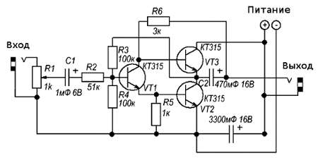 Схема простого УНЧ на транзисторах существенно выделяется своей компактностью и простотой сборки.