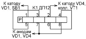 Рис. 2. Расположение выводов дистанционного переключателя ДП12