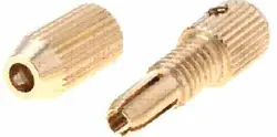 Что касается патрона для зажима сверла, несмотря на обилие их конструкций, предпочтение здесь следует отдать цанговым патронам, не использующим сменных вкладышей. Они, хотя и предназначены для работы со свёрлами в узком интервале их диаметров, но зато практически не создают проблем сбиением сверла при его установке. При этом особых ограничений для работы это обстоятельство не создаёт в силу особенностей конструкции самих карбид-вольфрамовых свёрл малых диаметров. Они исполняются в виде конструкции, состоящей из сверла и хвостовика. Для них диаметр сверла изменяется в соответствии с принятой сеткой размеров, а диаметр хвостовика, предназначенного для зажима в патроне, обычно составляет 3,17 мм. В связи с этим патрон, используемый в предлагаемой конструкции (рис. 2), имеет название "зажимной патрон 2,3-3,17", где 2,3 - диаметр вала электродвигателя в миллиметрах. Этот патрон позволит также использовать и обычные свёрла диаметром от 2,5 мм до 3,2 мм. Но в данных условиях его лучше использовать только для свёрл из карбида вольфрама, а для обычных - выделить отдельный патрон с большей универсальностью.