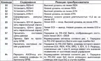 Каждая из них состоит из двух символов - идентификатора и параметра. Символ $, например, идентифицирует группу разовых команд. Следующий за ним символ (цифра) выбирает конкретную команду из этой группы. Идентификатор # означает, что ASCII-код сопровождающего его символа необходимо передать по интерфейсу GPIB.