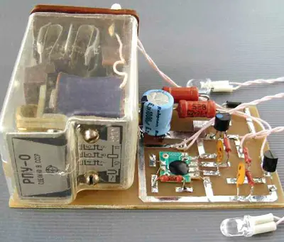 Следует отметить, что основным потребителем тока, который втекает в устройство (не считая реле), является симистор VS1, а точнее, ток, необходимый для его открывания, т. е. протекающий через управляющий электрод. Симистор BT131-600, который применён в устройстве, гарантированно открывается при токе управляющего электрода 7 мА, а номинальный ток - 3,8 мА. Поэтому для повышения экономичности устройства надо, чтобы большая часть тока, который задают резисторы R5, R6, попадала в управляющий электрод симистора. Для этого резистор R7 подбирают так, чтобы при вклю чении таймера (включении светодиода HL2) светодиод HL1 светил слабо. В большинстве случаев взамен этого резистора можно установить проволочную перемычку, кстати, с этого можно начать монтаж элементов. Кроме того, желательно, чтобы номинальное напряжение светодиода HL2 (обязательно красного свечения) было как можно меньше. В этом случае при его включении светодиод HL1 "Сеть" может почти погаснуть.