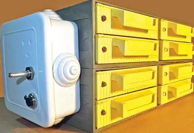 Лекарственные препараты размещены в типовой кассетнице для радиодеталей из восьми ячеек с выдвижными ящиками. Каждая её ячейка имеет размеры 112x55x120 мм. Общие габариты кассетницы - 224x110x120 мм. Поскольку ячейки негерметичны, но достаточно вместительны, лекарства следует хранить в заводских упаковках. Кассетница обеспечивает также защиту от света, необходимую для хранения некоторых видов лекарств. На лицевых панелях ячеек предусмотрены пазы для табличек с названиями лекарств.