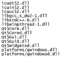 Все библиотеки копируют из папки ..ToolsQtCreatorin, за исключением двух последних, которые копируют из ..5.3mingw482_32pluginsplatforms и размещают в соответствующей подпапке рабочей папки программы. Можно также самостоятельно скопировать их с компьютера, на котором выполнялась компиляция программы, в рабочую или системную папку программы (размер архива - 126 Мбайт, в распакованном виде - 400 Мбайт).