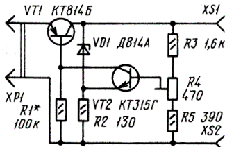 Вместо КТ814Б может быть любой другой транзистор из серий КТ814, КТ816, а вместо КТ315Г - любой из серий КТ315.