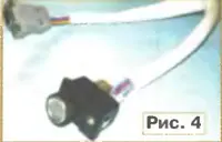 Резистор R1, выключатель SA1 и све-тодиоды HL1, HL2 собраны в корпусе от кнопки включения "противотуманных" фонарей (рис. 4), смонтированной на приборной панели, и соединены с устройством кабелем с штыревой колодкой разъема Х1.