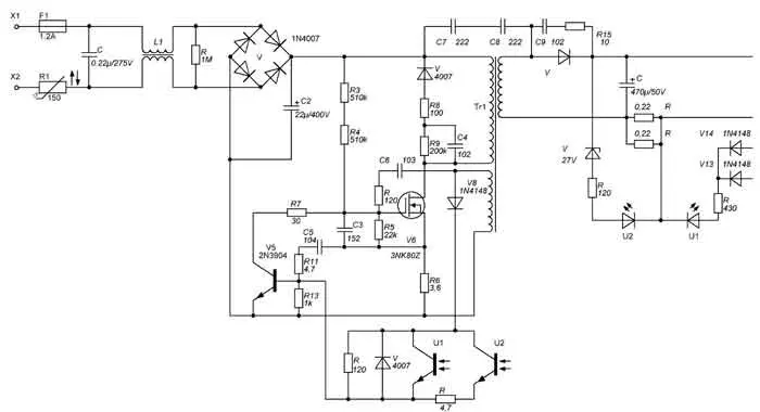 На самом деле для восстановления зарядных устройств принципиальные схемы не нужны. Достаточно последовательно проверить все ключевые элементы на номинал, ведь в схеме их часто не больше 10-20 шт.