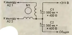 Предлагаем использовать для питания двухфазного электродвигателя преобразователь, аналогичный описанному в [Л] В нем оставлены только два из трех узлов А2, к выходам которых обмотки двигателя подключены в соответствии с рис. 1. Максимальная мощность двигателя - 500 Вт. Узел А1 двухфазного преобразователя собран по схеме, изображенной на рис. 2. Он формирует последовательности импульсов, сдвинутые на четверть периода их следования.