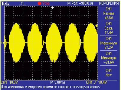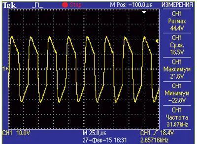 Рис. 2. Близкие по форме к синусоидальным колебания частотой 30...35 кГц