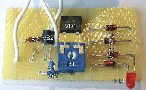 Для налаживания устройства нужен лабораторный автотрансформатор (ЛАТР). Однако можно обойтись и без него, используя силовой трансформатор мощностью около 300 Вт от лампового телевизора. Соединяя одну или несколько его вторичных обмоток последовательно синфазно с первичной, можно получить переменное напряжение до 250...255 В, что соответствует максимальному по ГОСТ напряжению в сети. Большее пороговое напряжение устанавливать не рекомендуется.