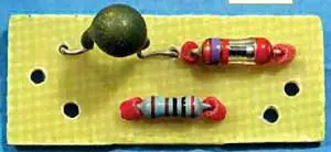 Большинство деталей устройства установлены на монтажной плате размерами 59x48 мм из стеклотекстолита, монтаж - двухсторонний навесной (рис. 3). Резистор R1 - импортный невозгораемый (или разрывной), установлен на отдельной плате размерами 45x22 мм. Остальные постоянные резисторы - любые общего применения (МЛТ, РПМ, С1-4, С2-23 и т. п.) указанной на схеме мощности рассеяния. Переменный резистор R12 - СП3-4аМ. Варистор RU1 - MYG-20K471, перед монтажом он обёрнут тонкой асбестовой бумагой, после чего на него надета термоусаживаемая трубка. Возможная замена варистора - FNR-20K471, FNR-14K471, GNR20D471K, LF14K471U, TVR14471. Терморезистор RK1 - сопротивлением до 2 кОм, с положительным ТКС извлечён из ЭПРА компактной люминесцентной лампы.