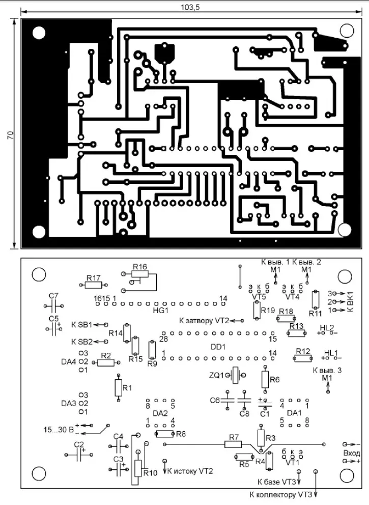 Файл печатной платы в формате Sprint Layout и программу микроконтроллера можно скачать здесь.