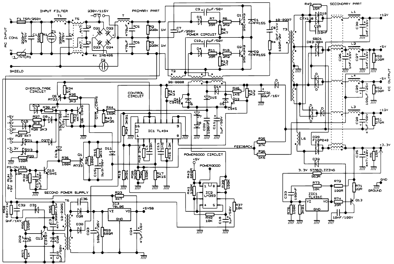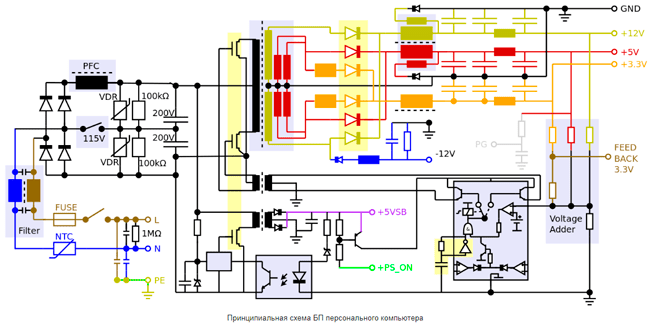 Рис. 1. Принципиальная схема БП ПК