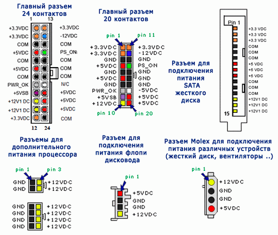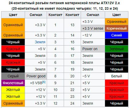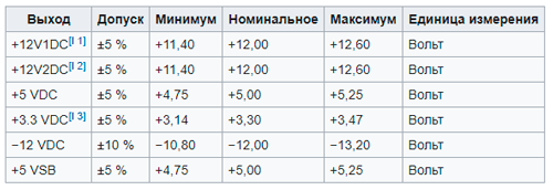 -12 и -5 В – могут отличаться в зависимости от производителя БП.