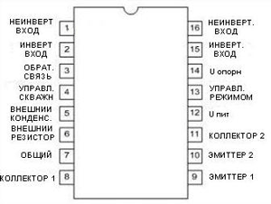 1.TL494CN – выполнена в корпусе DIP16, рассчитана на работу в условиях от 0 до 70°C;