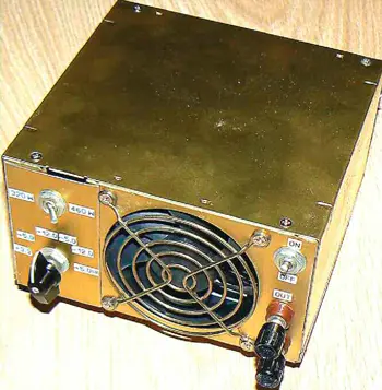 Все элементы стенда размещены в корпусе от блока питания компьютера. Стенд рассчитан на контроль за работоспособностью блоков питания мощностью до 500 Вт. При необходимости проверки более мощных блоков необходимо применить более совершенную систему охлаждения. Несмотря на интенсивное выделение тепла, нормальная работоспособность стенда возможна в течение до 5 мин. За это время вполне можно понять и определить потенциальные возможности испытуемого блока питания.