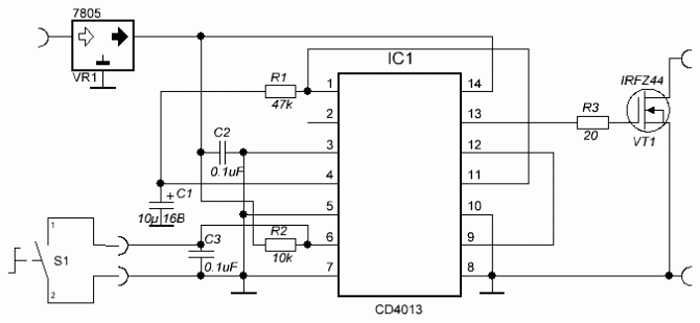Вкл. и выкл. одной кнопкой – схема на триггере